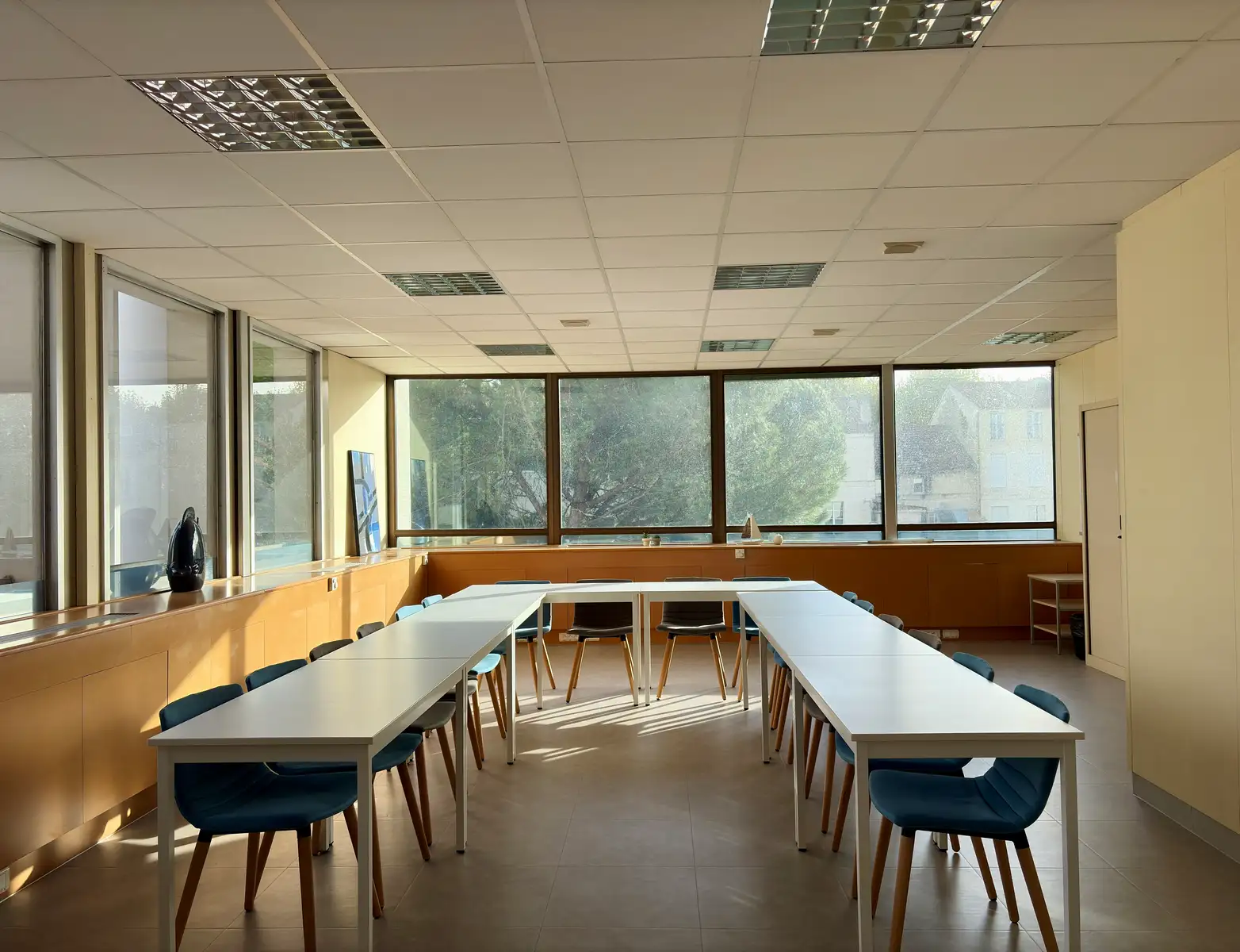 Notre salle de formation, particulièrement adaptée pour une formation, une réunion, une AG, peut accueillir 10 à 14 personnes.